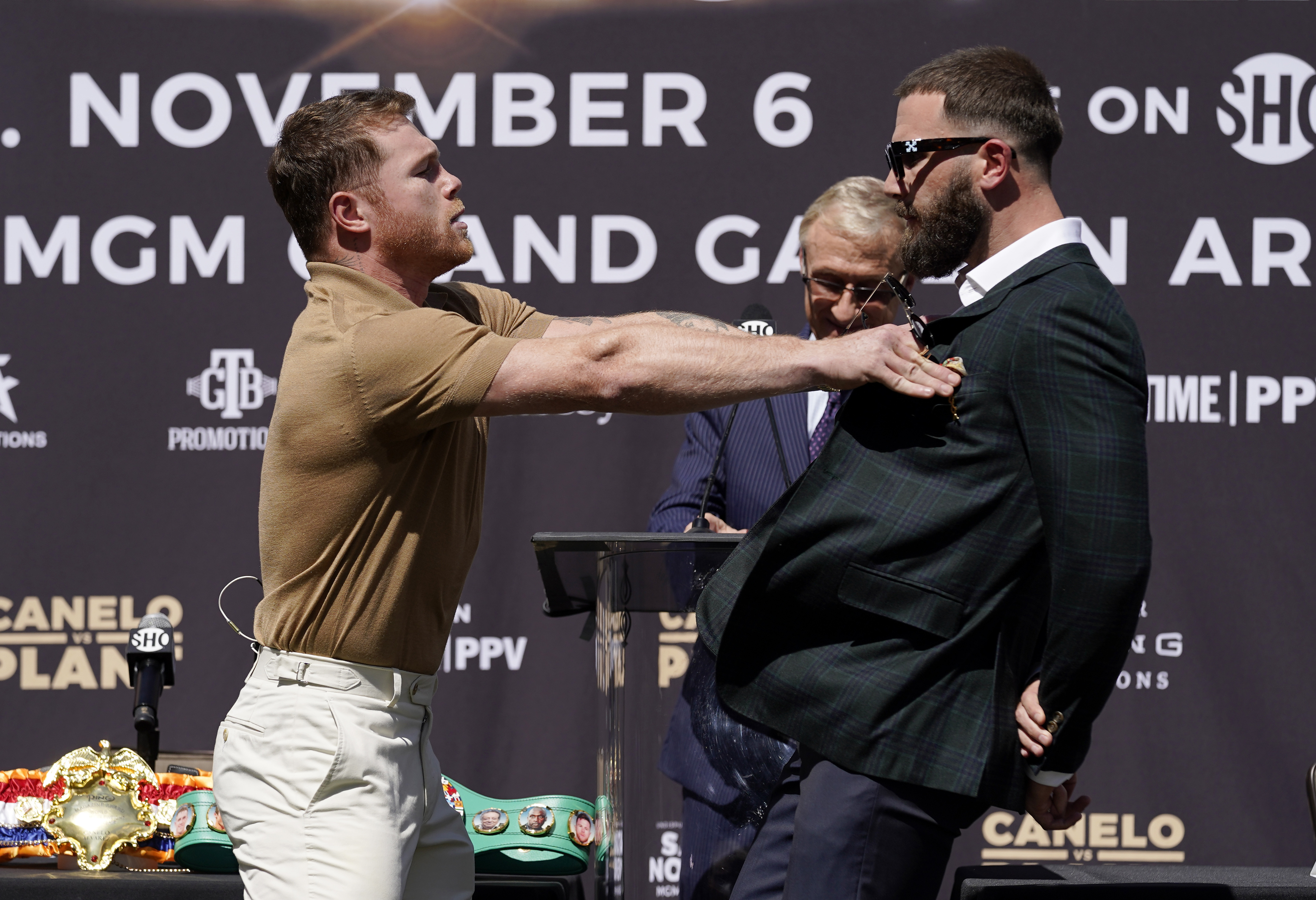 The two met for the first time at a press conference in Los Angeles just over a month out from their undisputed super middleweight title fight in November. The two met for the first time at the event in Los Angeles just over a month out from their undisputed super middleweight title fight on November 6. 6 in Las Vegas.