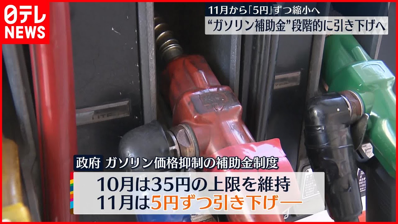 ガソリンの補助金 段階的に引き下げへ 11月から5円ずつ縮小で調整 Youtube